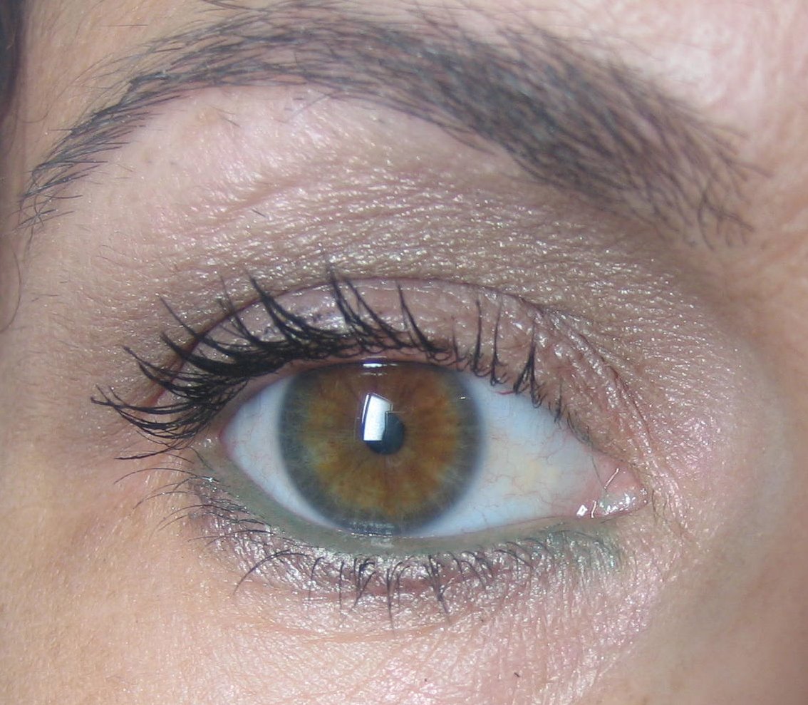Os enseño fotos de uno de sus looks que probè el otro día. Se trata de un look para hacer parecer los ojos mas grandes. Ya me direis si lo he logrado:
